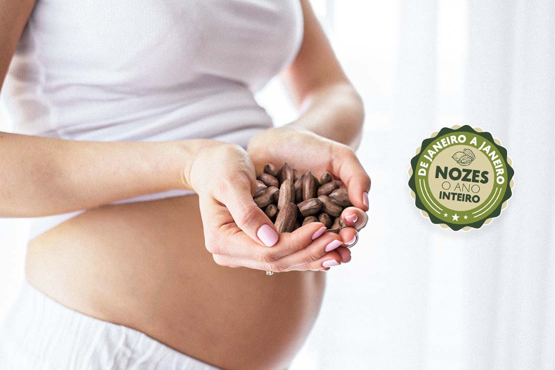 Além de ser fonte de muitas vitaminas, proteínas e minerais, a Noz Pecan ainda auxilia as grávidas a manterem hábitos alimentares mais saudáveis, sendo uma opção de lanche prático e muito nutritivo.
